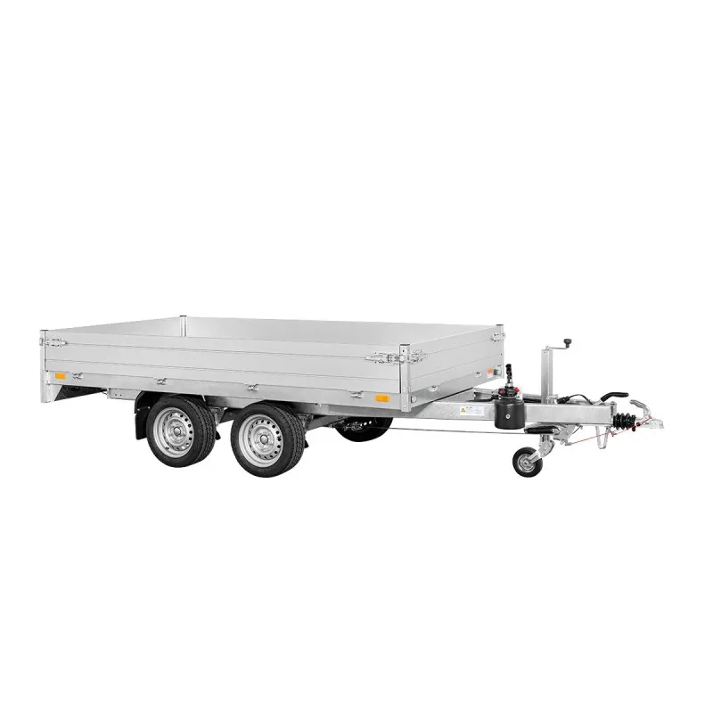 Caractéristiques techniques : – Longueur : 306 cm – Largeur : 170 cm – Poids : 2700kg – Charge utile : 2106 kg – Poids à vide : 600 kg – Longueur totale : 449 cm – Largeur totale : 176 cm – Hauteur ridelles : 30 cm – Hauteur plancher : 74cm – Dimension de pneus : 195/50R13C – Freiné/Non-freiné : Freinée – Essieu : double – Flèche en : V – Basculement : oui |