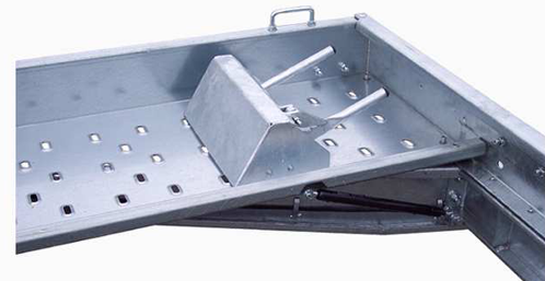 REMORQUE BASCULANTE PAR INERTIE MAINTENUE PAR 2 VERINS GAZ